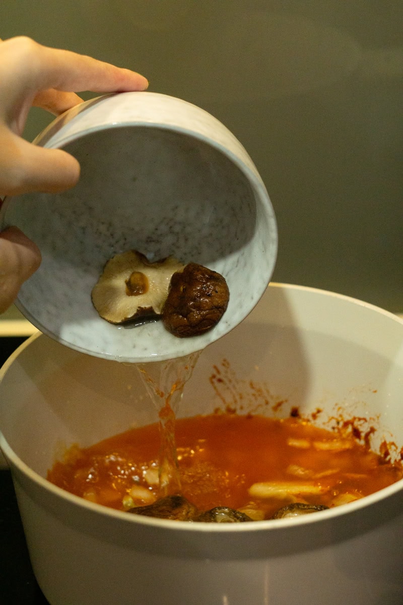 - Stock water: Make the stock by adding a piece of kombu or 4-5 dried shiitake mushrooms to hot water and letting it steep for at least 30 minutes.