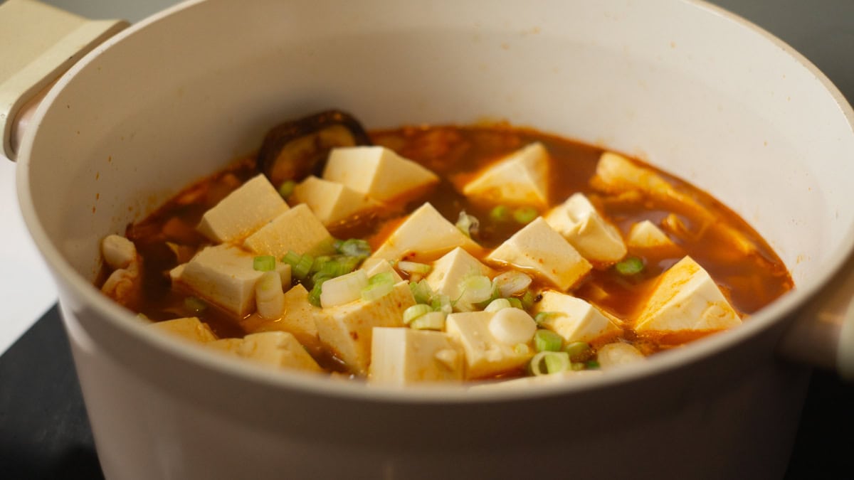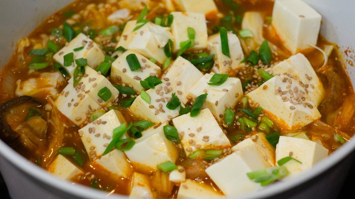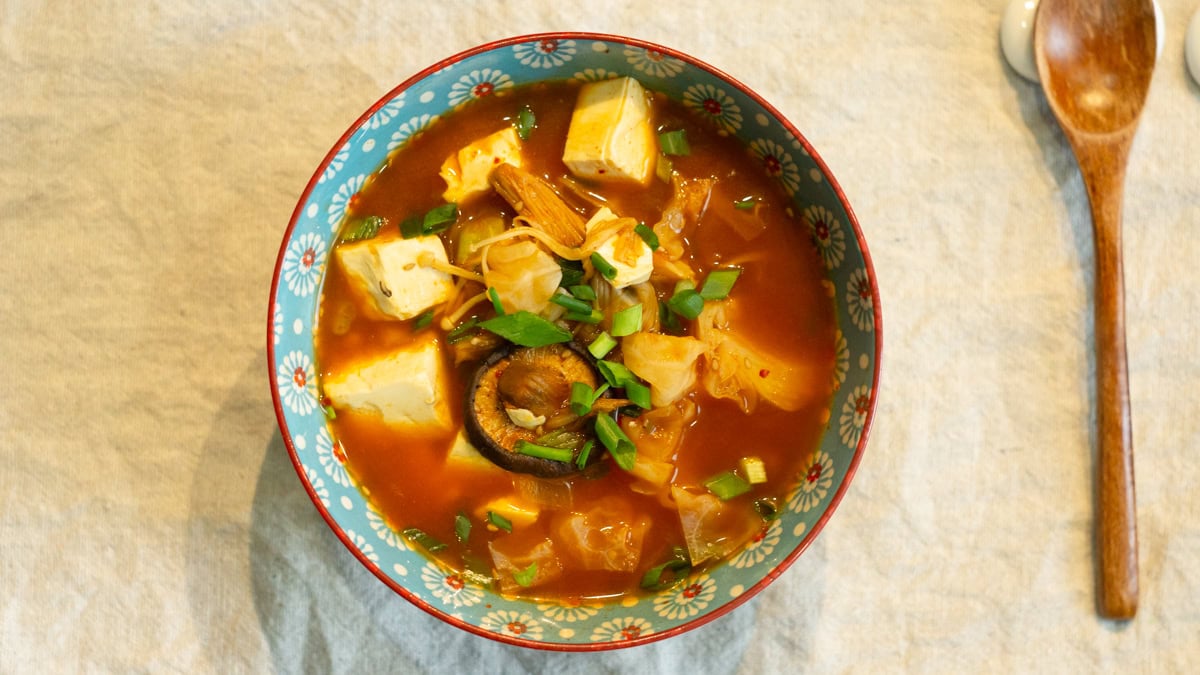 Warm and spicy kimchi jjigae is a beloved Korean dish. This version uses 100% plant-based ingredients, and is so yummy and flavorful!