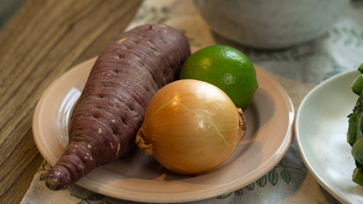 The authors of the Blue Zones studies, where they look at some of the healthiest, have the highest numbers of real-life longevity, inside a community or an area. The Okinawans are one of those. And what the researcher found is that the still-going-strong grandmas and grandpas have 60% of their calories come from the sweet potatoes for most of their lives. Now you know why I put sweet potato first in this recipe. But it’s not over yet.