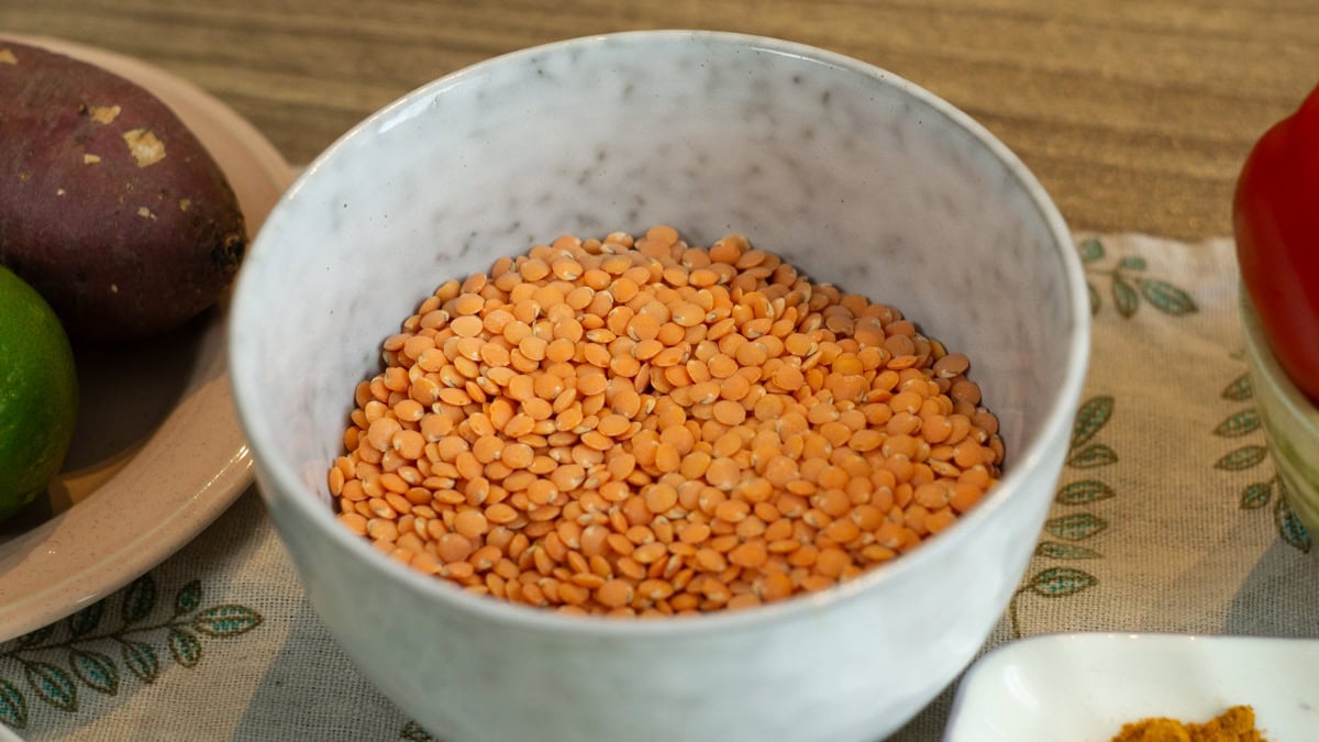 - ¾ cup red lentils, rinsed
